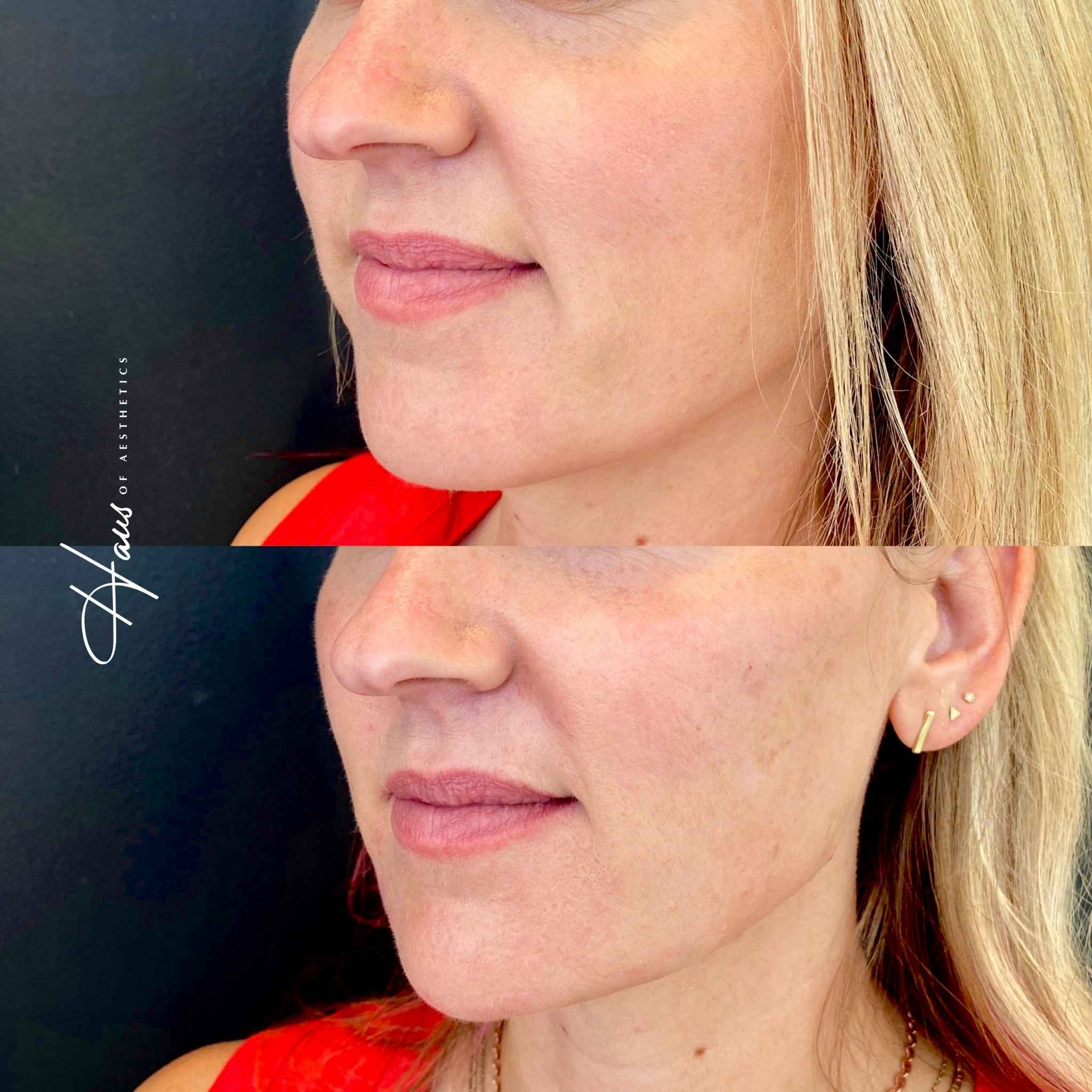 - Lip Fillers: By using lip filler to plump your lips, you can achieve a better balance with your enhanced jawline.